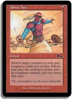 Switch target creature's power and toughness until end of turn. Effects that alter the creature's power alter its toughness and vice versa, this turn.