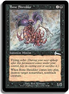 Flying; Echo. When Bone Shredder comes into play, destroy target nonartifact, nonblack creature.