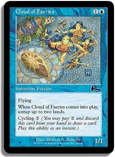 Flying. When Cloud of Faeries comes into play, untap up to two lands. Cycling <2>