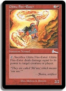 <T,Sacrifice Ghitu Fire-Eater>: Ghitu Fire-Eater deals damage equal to its power to target creature or player.