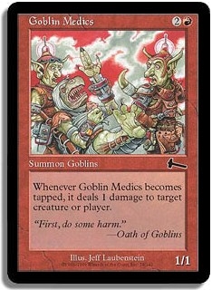 Whenever Goblin Medic becomes tapped, it deals 1 damage to target creature or player.