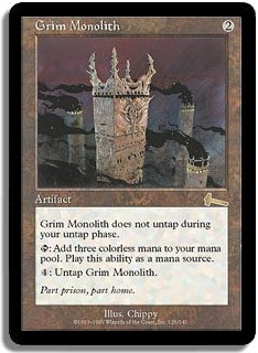 Grim Monolith does not untap during your untap phase. <4>: Untap Grim Monolith. <T>: Add three colorless mana to your mana pool. Play this ability as a mana source.