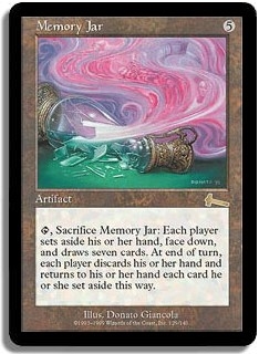 <T,Sacrifice Memory Jar>: Each player sets aside his or her hand, face down, and draws seven cards. At the end of turn, each player discards his or her hand and returns to his or her hand each card he or she set aside this way.