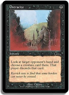 Look at target opponent's hand and choose a creature card there. That player discards that card.