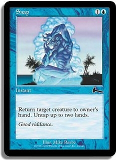 Return target creature to owner's hand. Untap up to two lands.