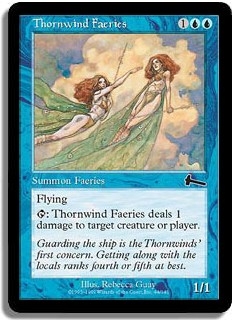 Flying. <T>: Thornwind Faeries deals 1 damage to target creature or player.