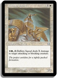 XW T: Ballista Squad deals X damage to target attacking or blocking creature.