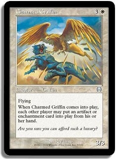Flying When Charmed Griffin comes into play each other player may put an artifact or enchantment card into play from his or her hand.
