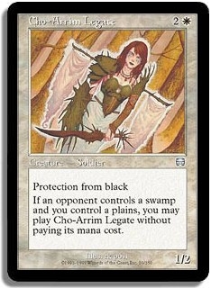 Protection from black If an opponent controls a swamp and you control a plains you may play Cho-Arrim Legate without paying its mana cost.