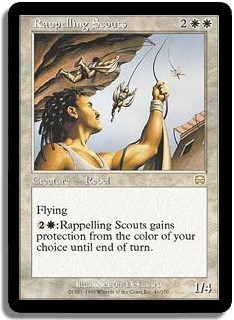 Flying 2W: Rappelling Scouts gains protection from the color of your choice until end of turn.