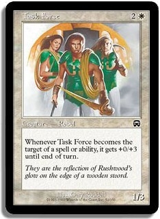 Whenever Task Force becomes the target of a spell or ability it gets +0/+3 until end of turn.