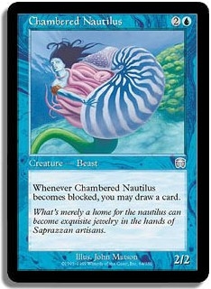 Whenever Chambered Nautilus becomes blocked you may draw a card.