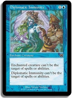 Enchanted creature can't be the target of spells or abilities. Diplomatic Immunity can't be the target of spells or abilities.