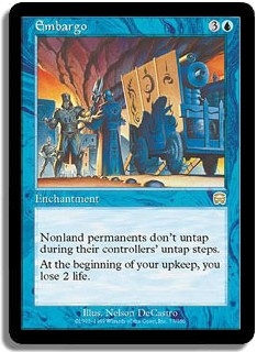 Nonland permanents don't untap during their controllers' untap steps. At the beginning of your upkeep you lose 2 life.