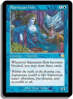 Whenever Saprazzan Heir becomes blocked you may draw three cards.