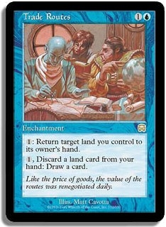 1: Return target land you control to its owner's hand. 1 Discard a land card from your hand: Draw a card.