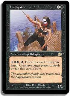 1BB T Discard a card from your hand: Creatures target player controls attack this turn if able.