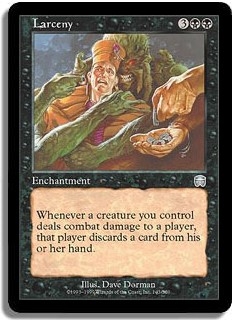 Whenever a creature you control deals combat damage to a player that player discards a card from his or her hand.