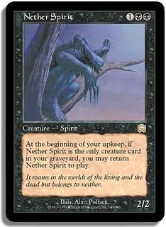 At the beginning of your upkeep if Nether Spirit is the only creature card in your graveyard you may return Nether Spirit to play.
