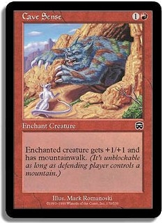 Enchanted creature gets +1/+1 and has mountainwalk. (It's unblockable as long as defending player controls a mountain.)