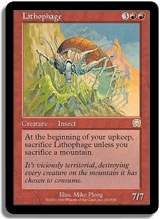 At the beginning of your upkeep sacrifice Lithophage unless you sacrifice a mountain.