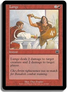 Lunge deals 2 damage to target creature and 2 damage to target player.