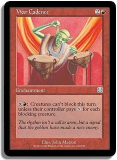 XR: Creatures can't block this turn unless their controller pays X for each blocking creature he or she controls. (This cost is paid as blockers are declared.)