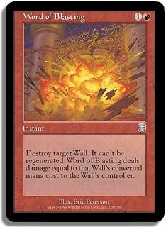 Destroy target Wall. It can't be regenerated. Word of Blasting deals damage equal to that Wall's converted mana cost to the Wall's controller.