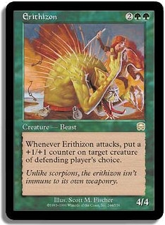 Whenever Erithizon attacks put a +1/+1 counter on target creature of defending player's choice.
