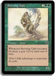 Whenever Snorting Gahr becomes blocked it gets +2/+2 until end of turn.