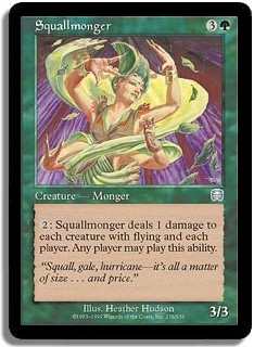2: Squallmonger deals 1 damage to each creature with flying and each player. Any player may play this ability.