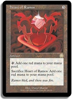 T: Add one red mana to your mana pool. Sacrifice Heart of Ramos: Add one red mana to your mana pool.