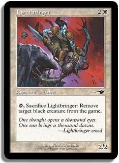 T Sacrifice Lightbringer: Remove target black creature from the game.