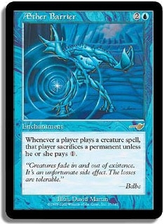 Whenever a player plays a creature spell that player sacrifices a permanent unless he or she pays 1.