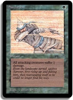 Sandstorm deals 1 damage to all attacking creatures.