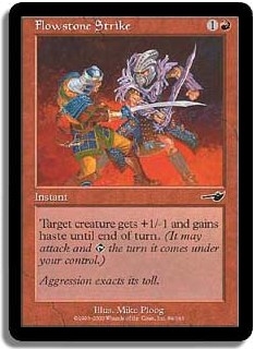 Target creature gets +1/-1 and gains haste until end of turn. (It may attack and T the turn it comes under your control.)