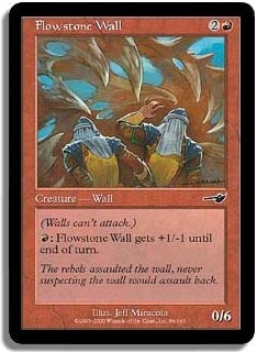 (Walls can't attack.) R: Flowstone Wall gets +1/-1 until end of turn.