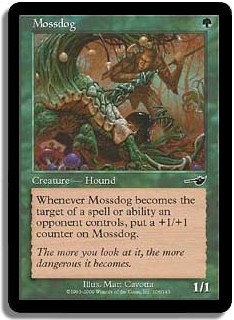 Whenever Mossdog becomes the target of a spell or ability an opponent controls put a +1/+1 counter on Mossdog.