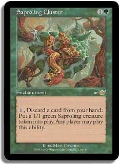 1 Discard a card from your hand: Put a 1/1 green Saproling creature token into play. Any player may play this ability.