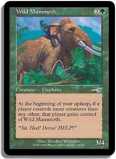 At the beginning of your upkeep if a player controls more creatures than any other that player gains control of Wild Mammoth.