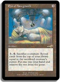 3 T Sacrifice a creature: Reveal cards from the top of your library equal to the sacrificed creature's power. Put one into your hand and remove the rest from the game.