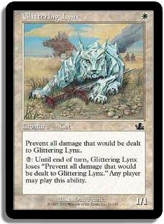 Prevent all damage that would be dealt to Glittering Lynx. 2: Until end of turn Glittering Lynx loses "Prevent all damage that would be dealt to Glittering Lynx." Any player may play this ability.