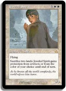 Flying Sacrifice two lands: Jeweled Spirit gains protection from artifacts or from the color of your choice until end of turn.