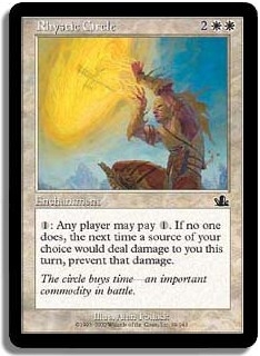 1: Any player may pay 1. If no one does the next time a source of your choice would deal damage to you this turn prevent that damage.