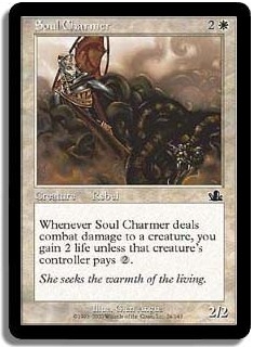 Whenever Soul Charmer deals combat damage to a creature you gain 2 life unless that creature's controller pays 2.