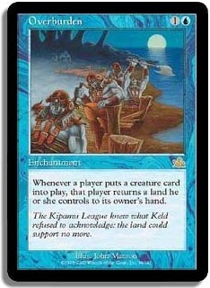 Whenever a player puts a creature card into play that player returns a land he or she controls to its owner's hand.