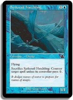 Flying Sacrifice Spiketail Hatchling: Counter target spell unless its controller pays 1.
