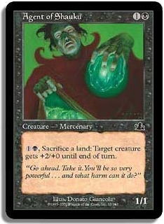 1B Sacrifice a land: Target creature gets +2/+0 until end of turn.