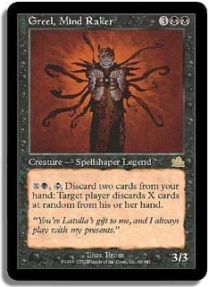 XB T Discard two cards from your hand: Target player discards X cards at random from his or her hand.