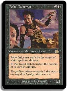 Rebel Informer can't be the target of white spells or abilities from a white source. 3: Put target Rebel on the bottom of its owner's library.